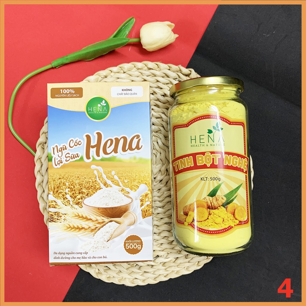 [Combo Sau Sinh] Ngũ Cốc Lợi Sữa Cho Mẹ HENA + Tinh Bột Nghệ Nguyên Chất HENA 500g , Sản Phẩm Thuộc Thương Hiệu HENA