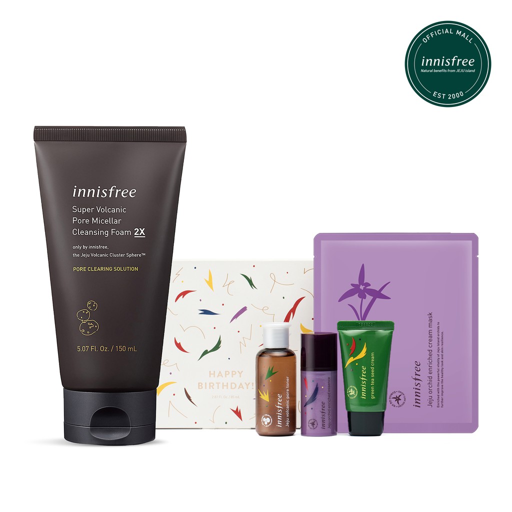 Bộ chăm sóc thu nhỏ lỗ chân lông innisfree Jeju Super Volcanic Pore Micellar Cleansing Foam 2X Set