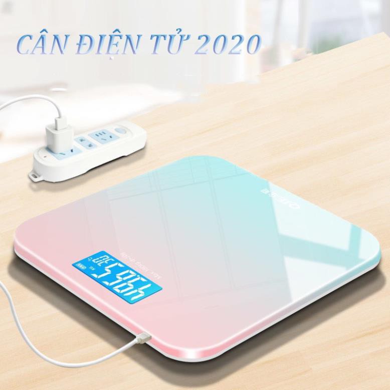 Cân Điện Tử Khỏe Điện Tử Mini Màn Hình LCD Mặt Kính Chịu Lực Tải Trọng 180kg Sặc USB hoặc Dùng Pin