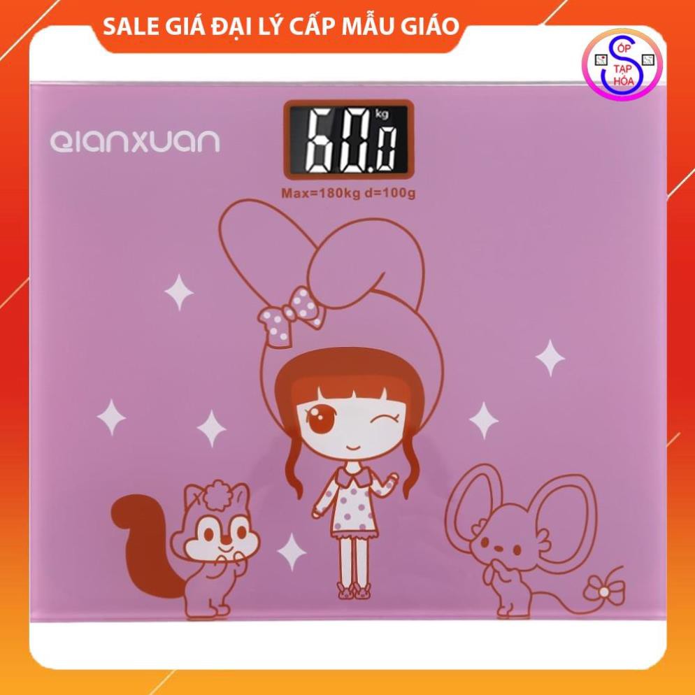 💎FREESHIP💎 Cân sức khỏe cường lực Vuông họa tiết 3D nhỏ gọn tiện dụng ( vỏ Hồng )