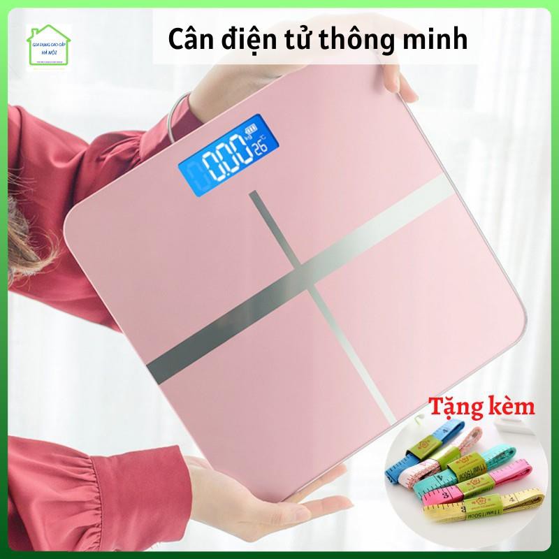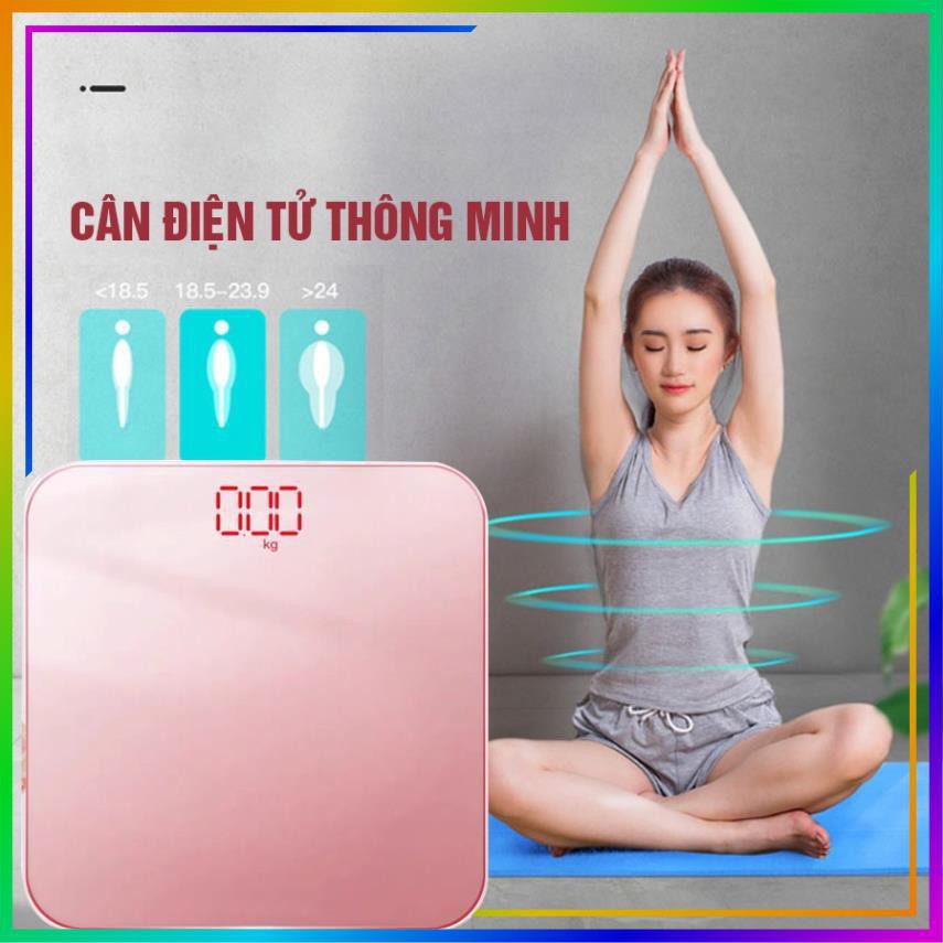 [NEW] Cân điện tử cân sức khỏe sạc USB mặt kính cường lực tích hợp chức năng đo nhiệt độ tặng kèm thước dây và sạc USB !