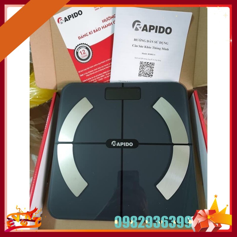 Cân Sức Khỏe – Cân Kiểm Tra Sức Khỏe Thông Minh Rapido – Cảm Ứng & Điều Khiển Qua Bluetooth