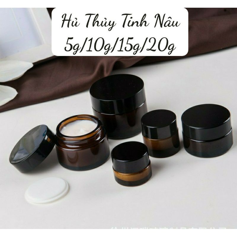 [Sỉ 4.6k] Hủ Chiết Kem Thủy Tinh Nâu 5g/10g/15g/20g - hủ lọ chiết mỹ phẩm - hủ kem thủy tinh