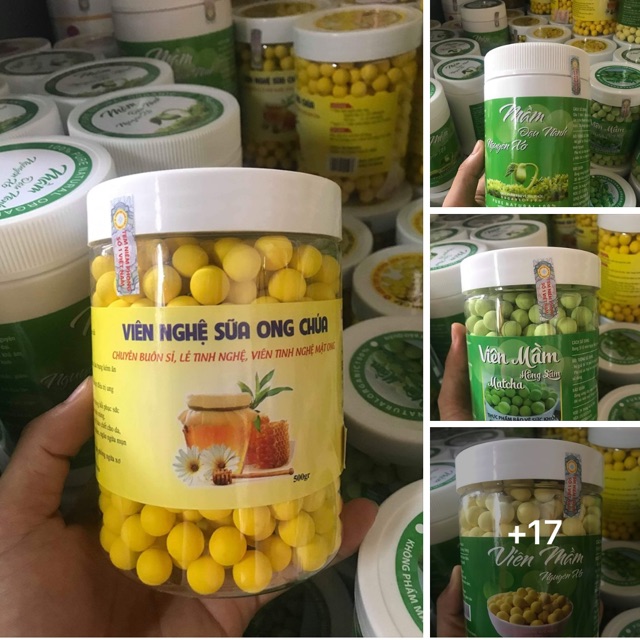 Siêu Sale 1kg 2 hộp Viên Mầm Nguyên xơ, Hồng sâm Matcha, Ca cao, Tảo xoắn và Viên mầm Collagen handmade