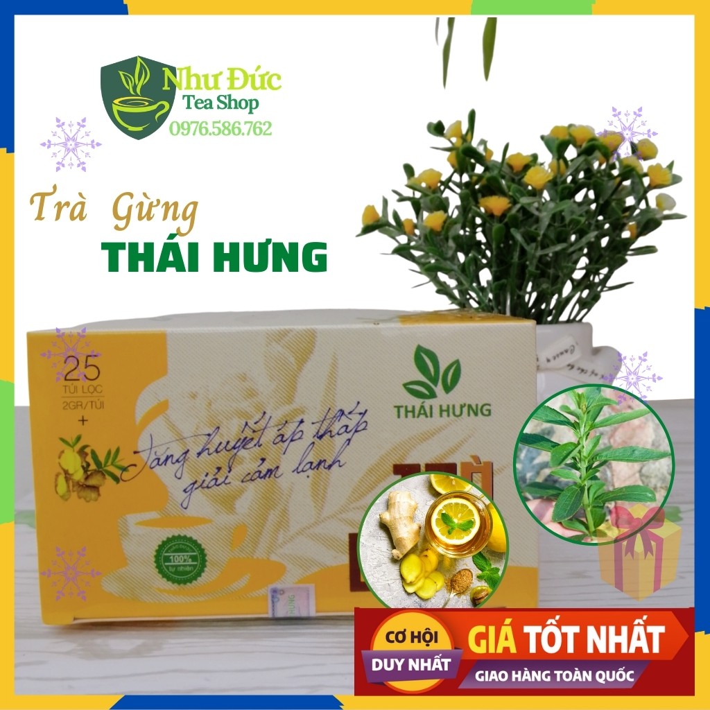 Trà Gừng Thái Hưng Cao Cấp, Tăng Huyết Áp Thấp, Giải Cảm Lạnh, Cảm Cúm, Hộp 25 Túi Lọc dây Nhúng