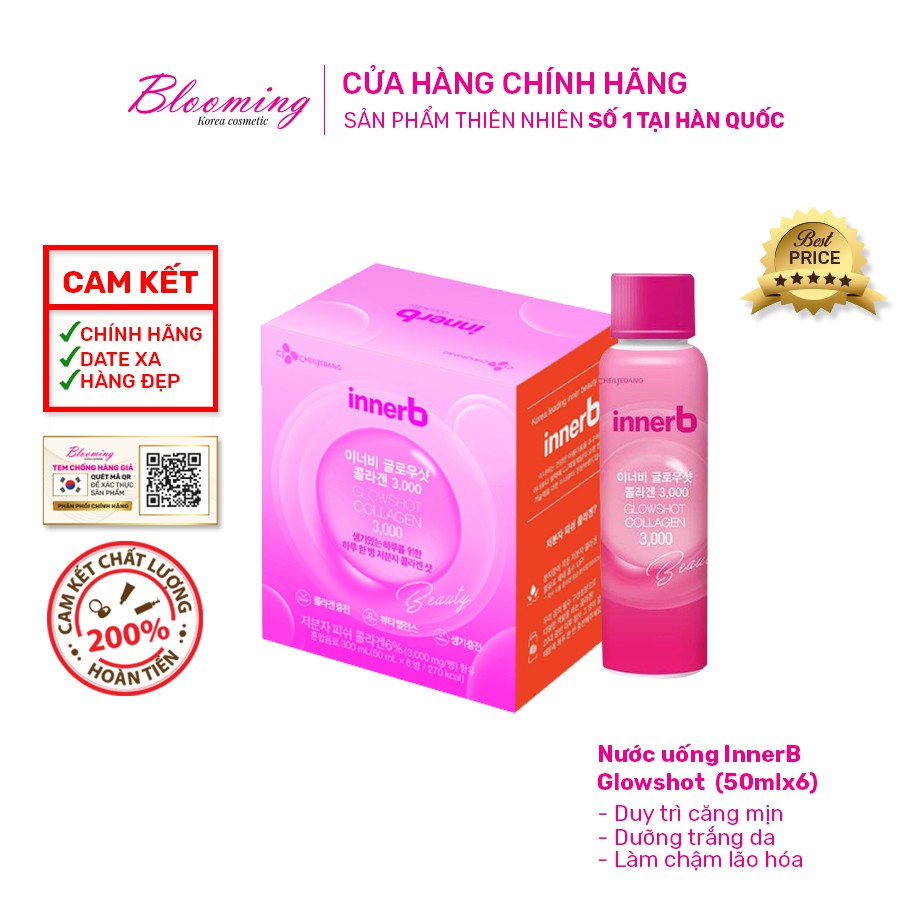 Hộp 6 chai nước uống Collagen Vitamin C sáng da InnerB Glowshot (50mlx6)