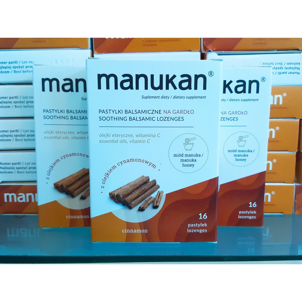 Viên Ngậm Giảm Ho, Đau Họng, Rát Họng Từ Mật Ong, Quế, Vitamin C Manukan Cinnamon Ba Lan ( Hộp 16 viên) - 0304598