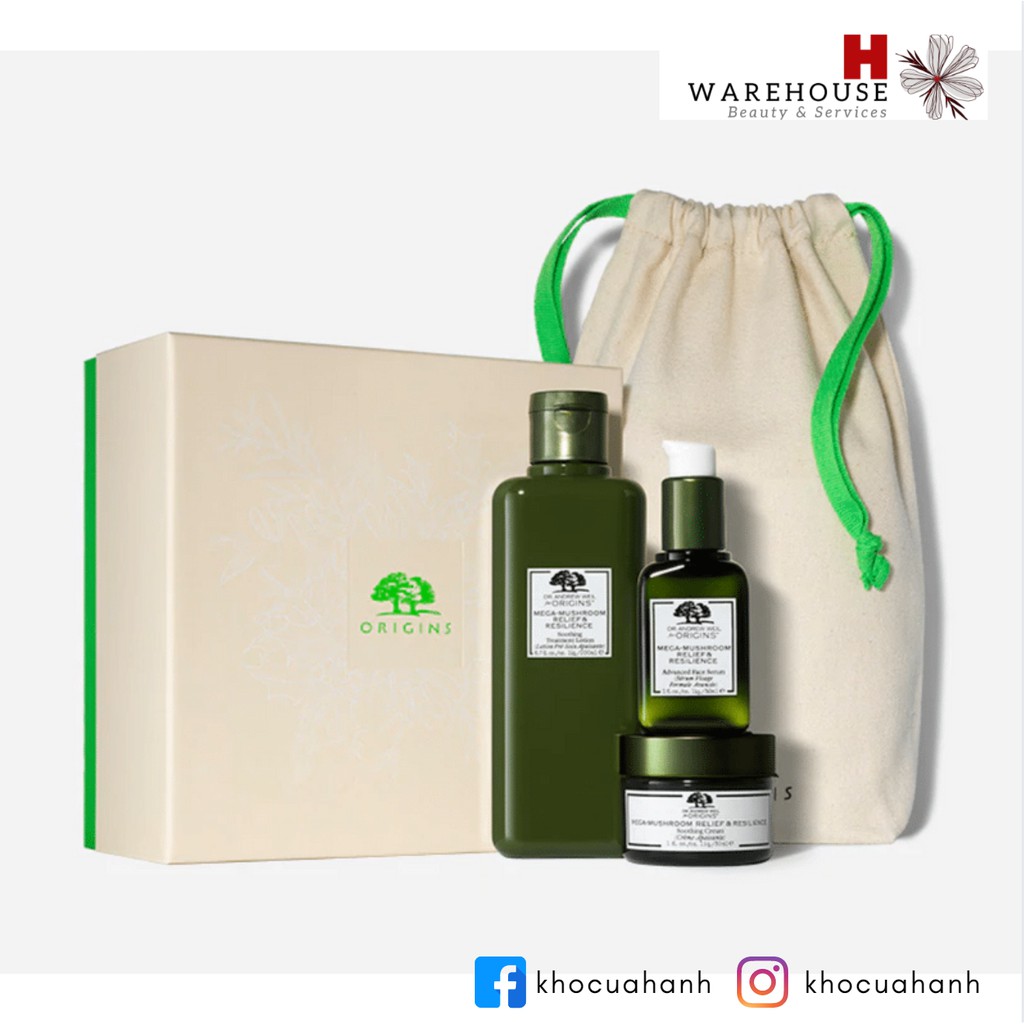 [Order - bill Mỹ] Set chăm sóc phục hồi da Origins Mega-Mushroom Skin-Calmers Trio