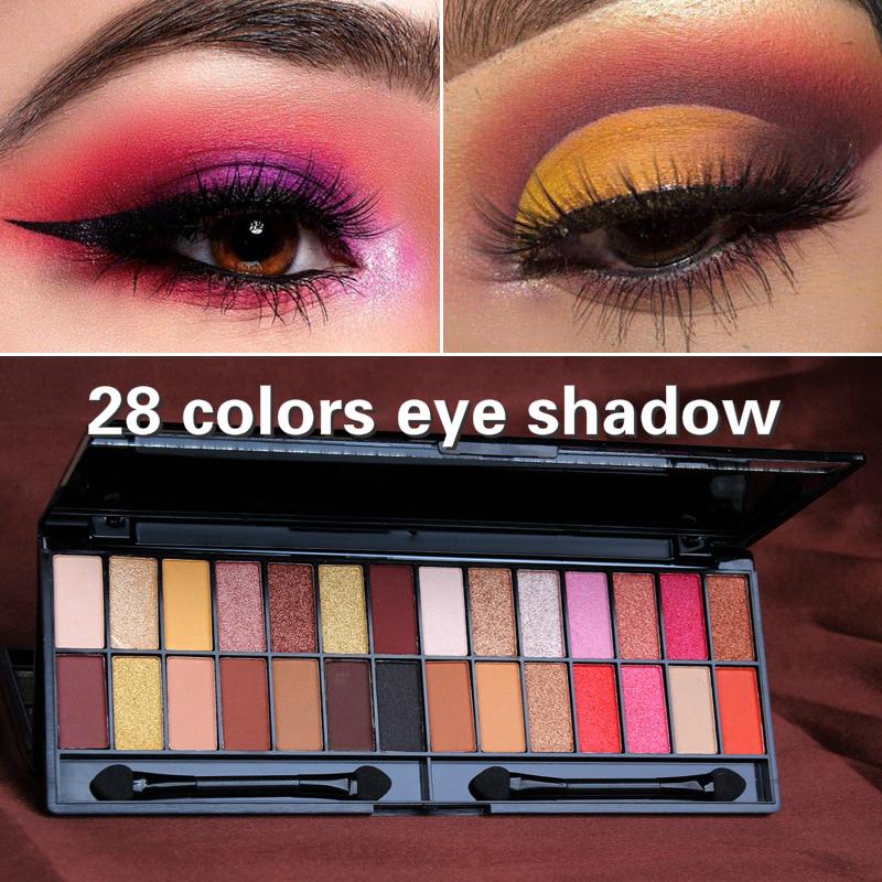 (hàng Mới Về) Bảng Màu Phấn Mắt 28 Màu Sắc Hiệu Ứng Lì Kèm Cọ Và Gương Tiện Dụng