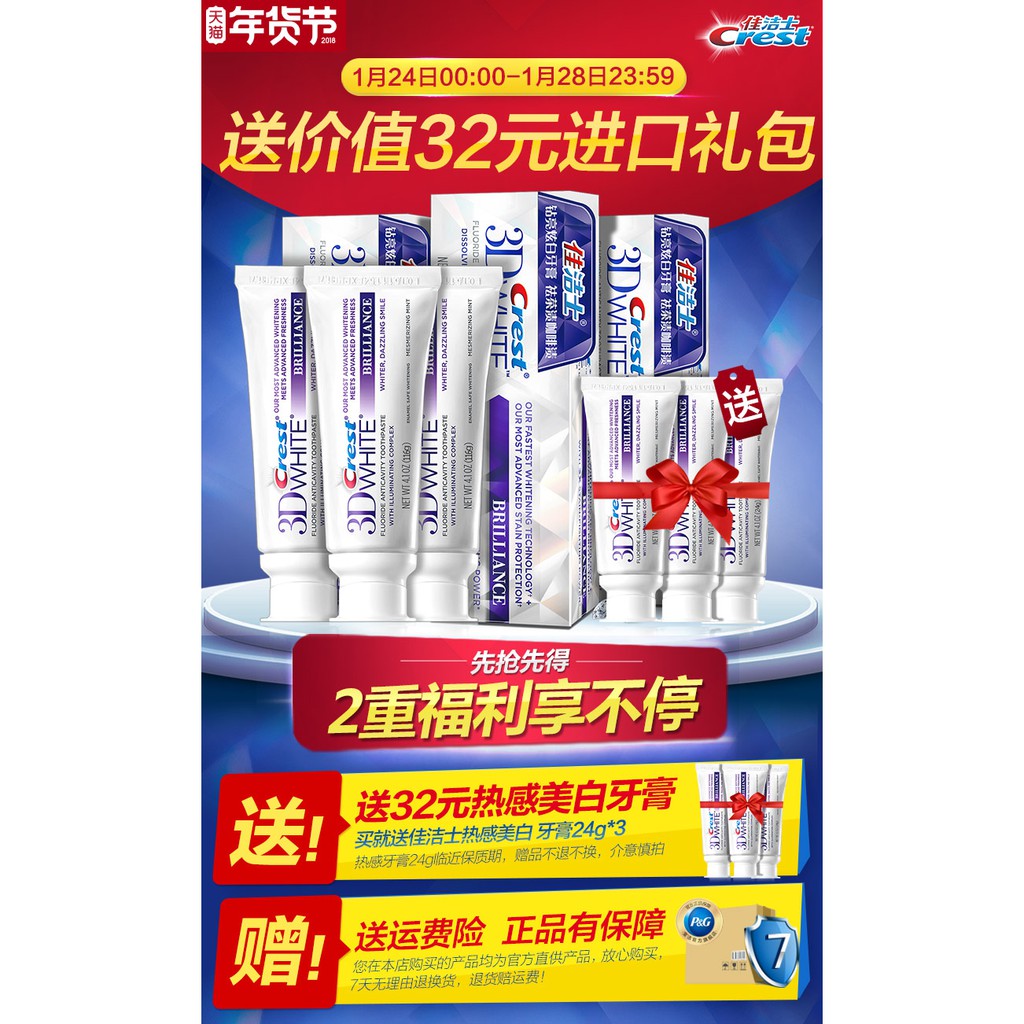 Kem đánh răng crest 3D ❤ FREESHIP ❤ Crest 3D White Brilliance 116gr – Kem trắng răng crest