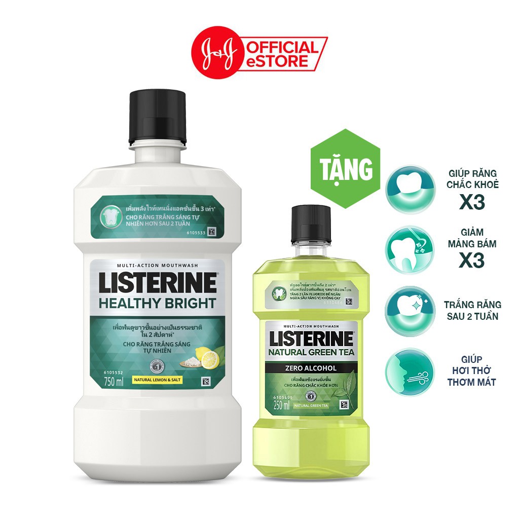 Nước súc miệng Listerine trắng sáng 750ml + Tặng 1 trà xanh 250ml - 101016576