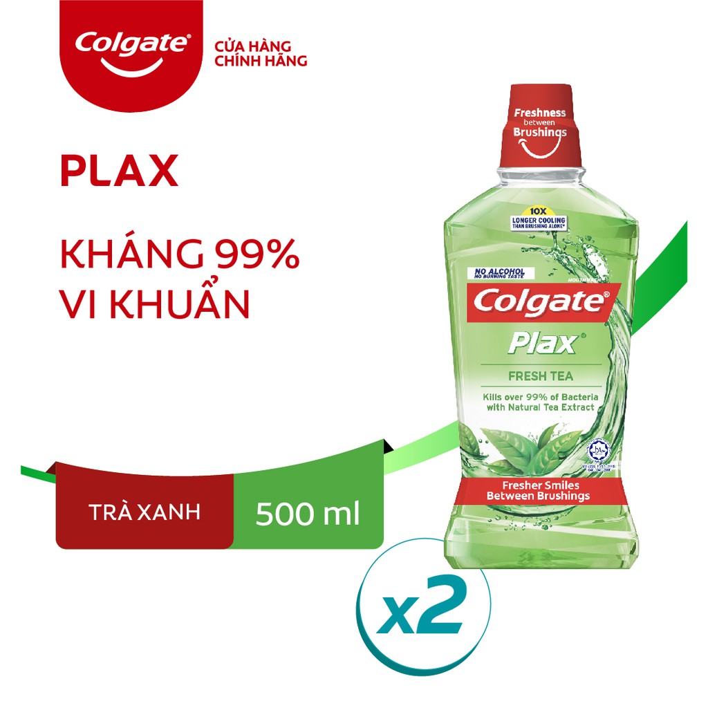 Bộ 2 chai nước súc miệng Colgate kháng 99% vi khuẩn Plax trà xanh 500ml/chai
