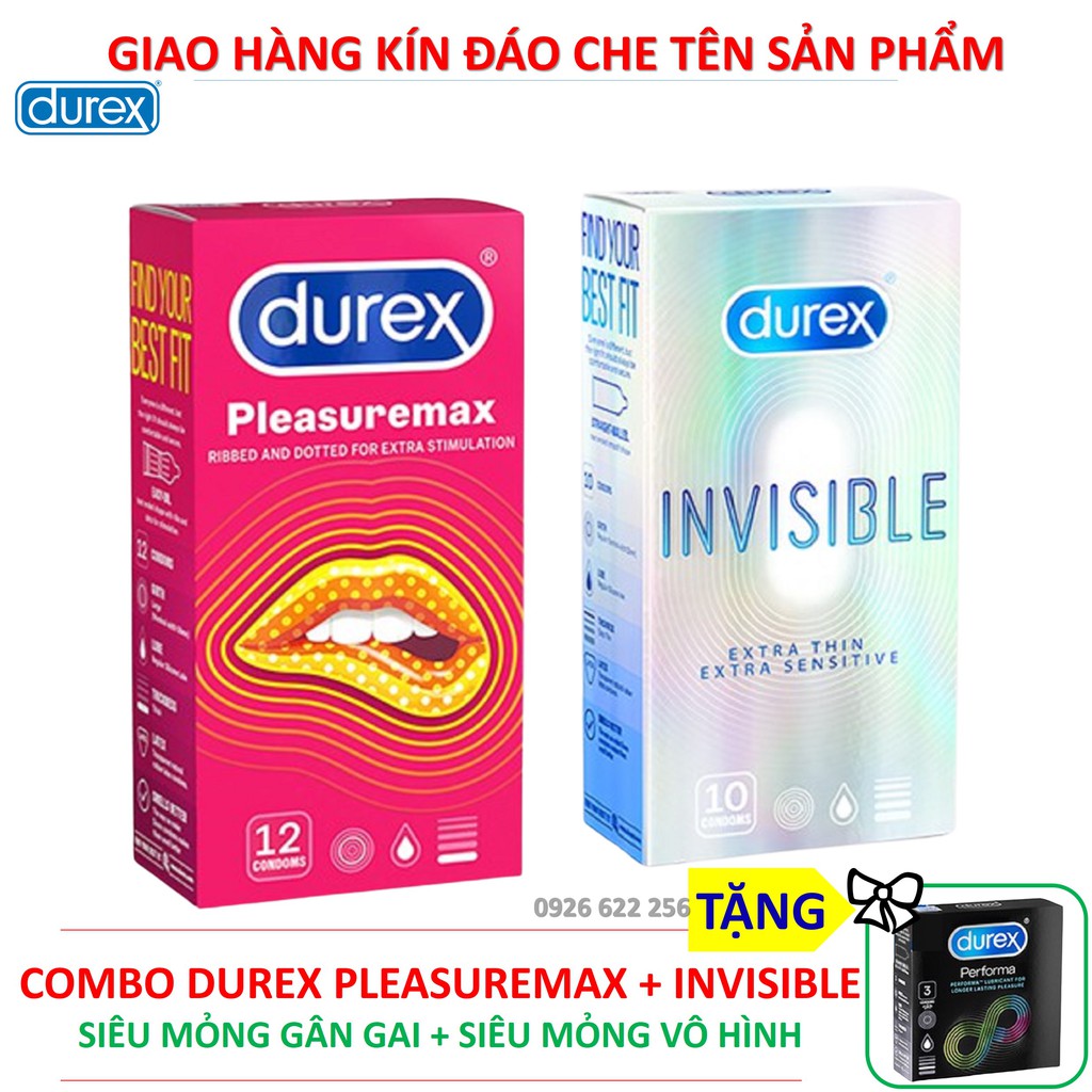 [DUREX CHÍNH HÃNG] COMBO 12 Bao cao su gân gai Durex Pleasuremax +10 Bao cao su siêu mỏng vô hình Durex Invisible