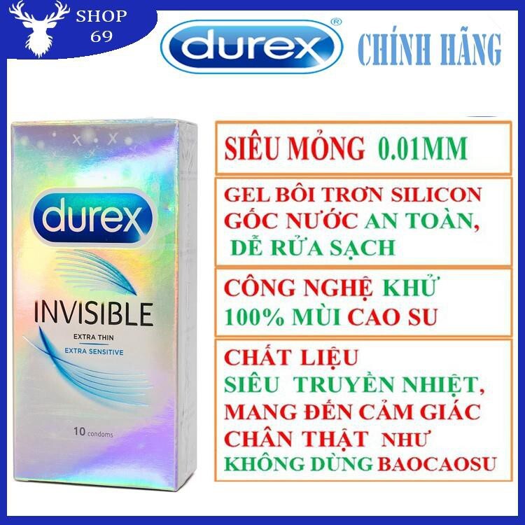 (BAO CAO SU MỎNG NHẤT THẾ GIỚI) Bao cao su DUREX INVISIBLE mỏng, an toàn, uy tín