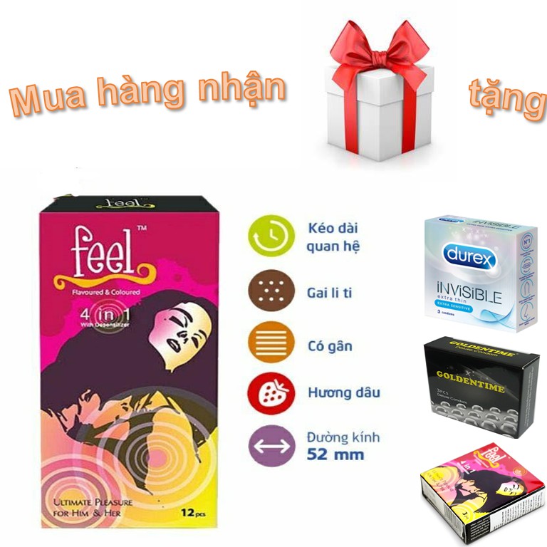 Bao Cao Su FEEL 4 IN 1 hộp 12c - Bi Gai - Kéo Dài Thời Gian Quan Hệ - Xuất Xứ Malaysia