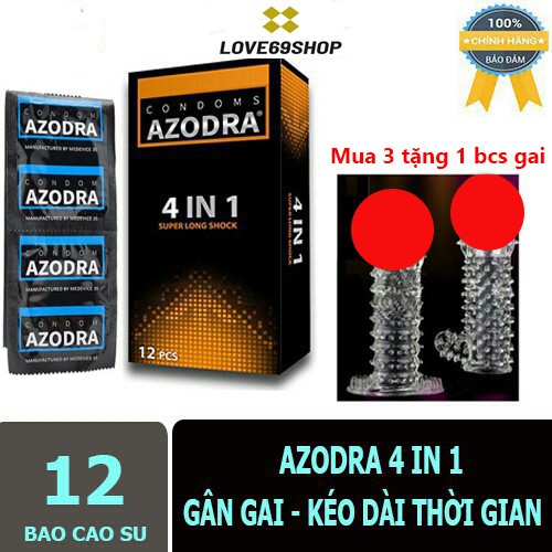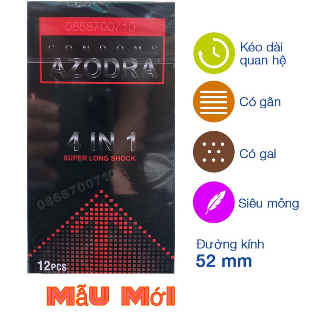 Bao Cao Su Azodra Gân, Gai, Mỏng, Kéo Dài Thời Gian Quan Hệ ( hộp 12 chiếc )