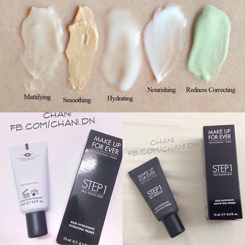 kem lót Make Up For Ever Step 1 Skin Equalizer Shop sẵn màu trắng cho da khô và da nhạy cảm (màu trắng) và lọ cho da vàng châu á (màu xám), lọ 5ml nhé Kem lót siêu đỉnh của Make Up For Ever là sản phẩm kem lót nổi tiếng được chị em yêu thích, đặc biệt Hot girl Quỳnh Anh Shyn cũng là một tín đồ của sản phẩm này! Kem lót được tích hợp các thành phần dưỡng chất cho tác động hiệu quả trên da như :Acti Tensor 3D giúp da săn chắc, Reactive làm đều màu da và Hyaluronic Acid cung cấp nước cho da Đặc điểm nổi bật của sản phẩm chính là khả năng hiệu chỉnh màu da cực tốt với 7 tone màu và 4 tone màu dành riêng cho những bạn có làn da nhạy cảm và khuyết điểm -Lấy một lượng kem vừa đủ, khoảng tầm hạt đậu trên mu bàn tay sau đó dùng chổi tán đều cho toàn bộ khuôn mặt -Cảm nhận ban đầu của mình khi apply kem lót này trên da là da vô cùng ẩm mướt, tuy nhiên lại không hề bít rính -Lớp kem lót rất mỏng và dễ tán đều cho toàn bộ khuôn mặt, khi dùng thì kem lót đem lại hiệu quả điều chỉnh màu da tức thì, da đều màu tạo tiền đê cho các bước make up tiếp theo cực kì dễ dàng -Về khả năng hiêu chỉnh màu da thì mình hòa toàn ưng, lúc sử dụng da sáng hơn hẳn, nhưng không hề giả mà lại khiến mình cảm thấy rất tự nhiên như kiểu da thật -So với các loại kem lót khác thì Make up For Ever mang lại nhiều tác dụng hơn hẳn, ngay từ bước kem lót đã có thể che phủ được những khuyết điểm nhỏ trên da của mình như mụn cám chẳng hạn, vì thế đến bước dùng kem che khuyết điểm chỉ việc dùng thêm một chút là ok, trong tự nhiên hơn rất nhiều -Về khả năng kiềm dầu thì kem lót này dùng được cho nhiều loại da kể cả da dầu, nhìn chung khả năng kiềm dầu chỉ tamk ổn thôi, nếu muốn lớp kem lót lì không bóng thì các bạn dùng chổi tán kĩ kem trên da là được =>Nhìn chung: Kem lót của Make up For Ever dùng rất ổn, tin mình đi, chỉ có điều là giá hơi max một chút thôi.hì hì #minisize