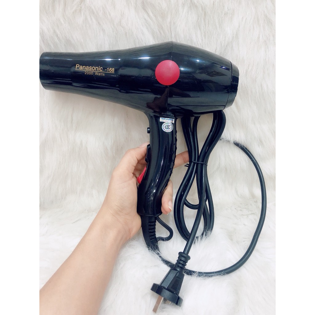 Loại Máy Sấy công nghiệp loại khỏe,gió mạnh,công suất lớn Chức năng sấy hàng,xì màng co,độ nóng cao,gió mạnh, Điện áp 220v Công suất (W) 2000W Bảo hành 1 tháng Máy sấy tóc PANASONIC-168 được thiết kế gồm 2 tốc độ gió kết hợp cùng chức năng giữ nhiệt ổn định để mang đến cho mái tóc sự chăm sóc nhẹ nhàng và hiệu quả nhất. Ngoài ra, máy còn được thiết kế với tay cầm có thể gấp gọn, tạo sự thoải mái và tiện lợi khi sử dụng, cất giữ cũng như mang theo khi cần. ĐẶC ĐIỂM NỔI BẬT Máy sấy tóc PANASONIC-168 -Là dòng máy sấy có công suất lớn thích hợp cho nhà hàng,gia đình,và sấy hàng,xì màng co… Độ nóng cao và gió thổi mạnh nên việc sấy tóc và sấy hàng rất nhanh và hiệu quả tiết kiệm được rất nhiều thời gian cho người sử dụng. - Có 2 tốc độ gió, tạo sự linh động khi sử dụng. -có 3 chế độ nóng nhiều,nóng ít,và không nóng để người sử dụng lựa chọn chế độ khi sấy tóc hay khi cần sấy hàng.v.v. - Chức năng giữ nhiệt ổn định giúp bảo vệ tóc không bị hư tổn. - Công suất tối đa 2000W. - Tay cầm chắc chắn tiện lợi khi sử dụng, phím bấm rất tiện lợi.