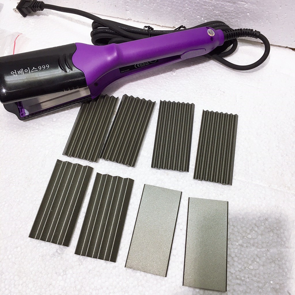 Máy dập xù tóc thay bản, có 3 bản dập to, nhỏ, nhỡ và 1 bản là đi cùng, hàng loại 1 chất lượng tốt - Thay bản dễ dàng - Nhiệt đều ổn định - Nhiệt lên nóng nhanh - Mặt bản hợp kim không hại tóc Hàng có sẵn