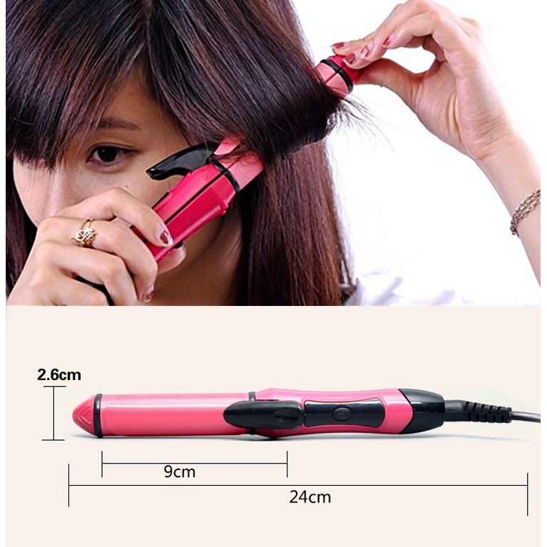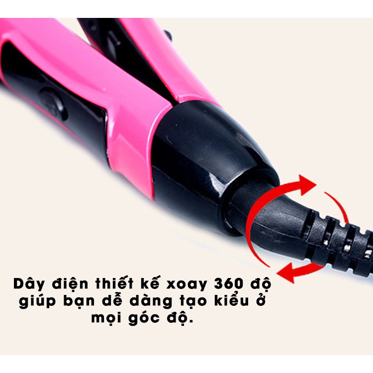 ***MÁY UỐN DUỖI TÓC 2 IN 1 CAO CẤP FULL BOX: -Sự kết hợp thông minh 2 chức năng uốn, duỗi trong 1 chiếc máy rất chuyên nghiệp giúp chị em phụ nữ tiết kiệm được nhiều thời gian và tiền bạc, dễ dàng thay đổi phong cách cho mái tóc... - Thiết kế nhỏ gọn vừa tay, dễ dàng mang theo trong những chuyến đi xa - Chất liệu: Nhựa + Hợp kim cao cấp phủ lớp ceramic giúp bảo vệ tóc giảm hư tổn và truyền nhiệt năng hiệu quả giúp khí nóng lưu thông đều. -Máy có công tắt ngắt, mở giúp bạn dễ dàng ngắt điện khi nhiệt độ ổn định mà không cần rút phích cắm. -Dây điện thiết kế xoay 360 độ giúp bạn dễ dàng tạo kiểu ở mọi góc độ. -Kích thước: 2,6cm* 24cm -Công xuất: 35W -Nguồn điện: 220-240v ~ 50-60Hz **LƯU Ý: -Trước khi kẹp, tóc cần được lấy đi bụi bẩn và chất đầu tự nhiên cho do da đầu tiết ra bằng việc gội sạch. Sấy cho đến khi tóc khô và còn hơi ẩm. Cuối cùng, sử dụng máy kẹp để tạo cho tóc kiểu như bạn mong muốn.