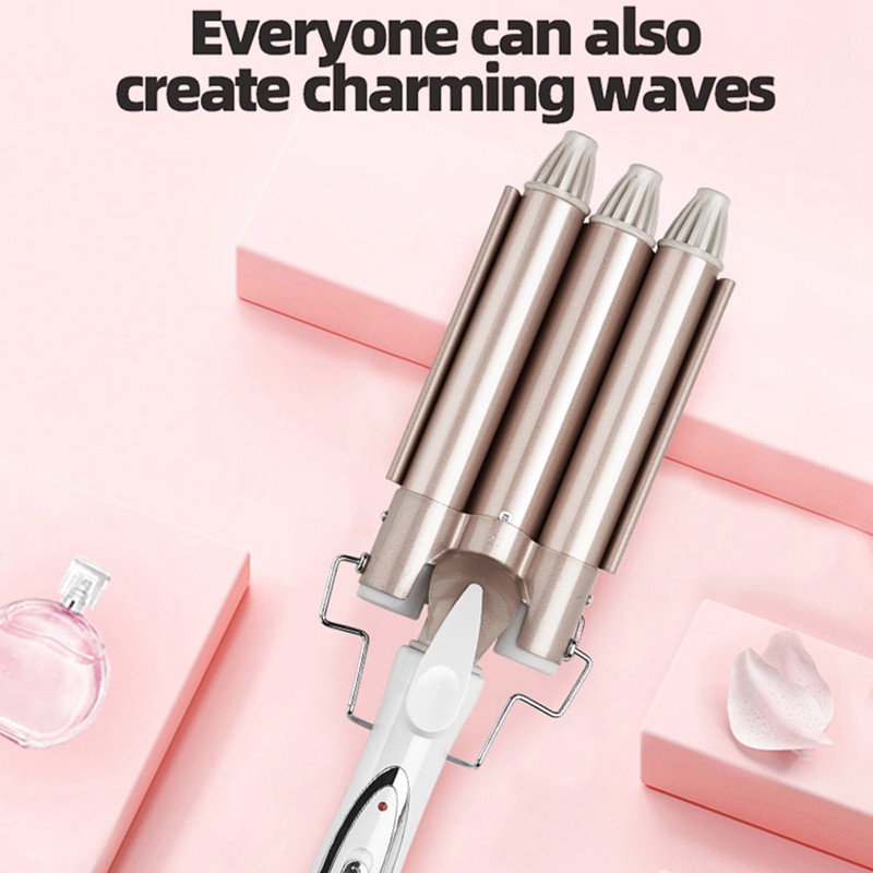 Product Description: Product specifications: 22mm /25mm Product name: three-tube egg roll curling iron; Product voltage: 100-240V 50/60Hz; Product power: 30-50W Temperature level: 2 levels of temperature adjustable (170°C, 220°C); Product size: 39*10*8 cm Weight: 507g The package includes: 1pc*three-tube egg roll curling iron