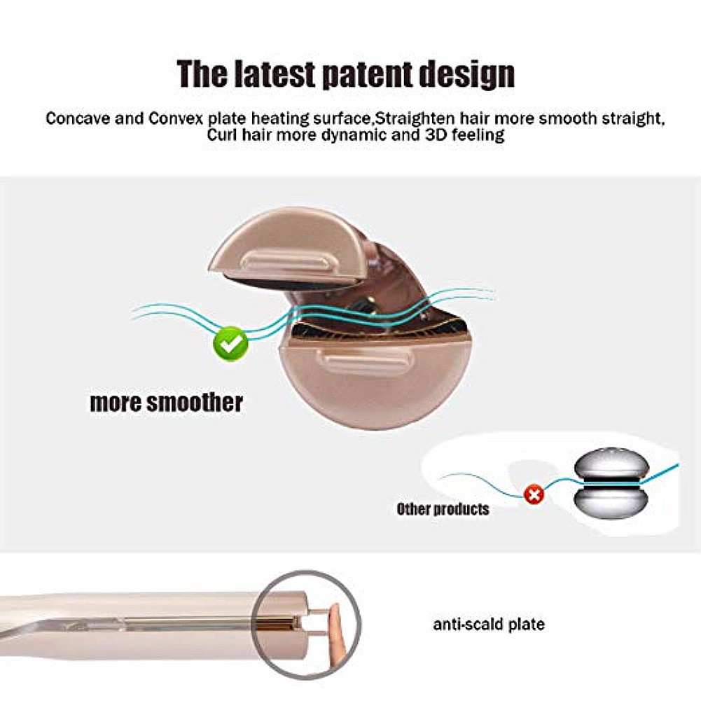 Description:Description The straightener is the preferred everyday tool for straightening or curling hair. You are free to design your own hairstyle, straight or curly, either according to your mood or dressing style. Everyday you can embrace a new self. Features No need bother buying two hair tools. 2-In-1 design, can function both as a strightener or a curler. PTC heating model and titanium plate create a shinier, silkier finish in lesser time and eliminates frizz for longer time with less damage. 3cm/1in plate suitable even for short hair. Auto shut-off if no operation in 60 minutes. Easy to use, you are free to design your own hairstyle. Specifications Plug standard: UK plug Heating model: PTC Voltage: AC110-220V 50/60Hz Power: 150W Plate material: Titanium Package size: 33.5 * 9.5 * 6cm Specifications:The straightener is the preferred everyday tool for straightening or curling hair. You are free to design your own hairstyle, straight or curly, either according to your mood or dressing style. Everyday you can embrace a new self.Package Included:1 * 2-in-1 Hair Strightener / Curler 1 * English User Manual Notes:Due to the difference between different monitors, the pictures may not reflect the actual color of the item. Compare the detail sizes with yours, please allow 1-3cm error, due to manual measurement. Please leaving a message before you give the bad feedback, if the products have some problems. Thanks for your understandings