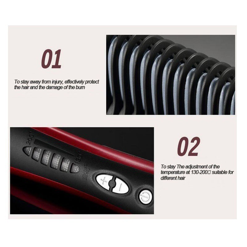 Specification: Compatible Hair Condition: Dry Hair Thermal Conductor: Tourmalin Ceramic Stying Timing: 2 Minutes. Voltage: 110V - 240V Plug: US Plug Temperature Grades: 6 Adjustable Degree Level. Range from 130 Degree to 201 Degree. Stying TemperatureSelection: 200 C - 190 C for Heavy Curling Hair 175 C - 160 C for Light Curling Hair 145 C for Dyed Hair 130 C for Soft Hair Amazing Straight Hair Styler-A digital hot air brush comb which can make your hair smoothly and straightly within 2 minutes no matter how fuzzy or tangling your hair is. So it is can be used as a hair straightener. High quality material makes it much safer and more durable for daily use-Anion Maintainence Damage-free. The Conductor Part is Made of Tourmalin Ceramic with Anti-static. Technology which Releases Anion and Maintains Healthy Hair and Reduces the Damages.There are 23 iron comb teeth on the ceramic panel you do not need to worry that the teeth will fall off or crack off. Smart Design meets different needs of hairstyle-6 Temperature Grades Selection Suitable for Different Hair Types. With Adjustable Heating Level(130 -200 ) and Working Under Contastant Temperature this Hair Straightener Reaches the Selected Heat in 30 Seconds and Archieves Desired Results Quickly. Rating Power: 29 Watts Rating frequency: 50 Hz 360 degree angle free swivel cord with hang. Tourmaline Ceramic flats:quick and last long straight with Anion theory. High Quality Heat insulation flats: protect you from getting hurt. 20 heating layers at least each layer seems a straightener separately. Quick styling for your daily busy life also can be used as curler. Security matters: -Try not to hold the back of bristles which would be very hot after heated only to hold the brush handle -Do not allow children under age of 14 to use this product in the absence of adults -Never use it with wet hair in the bathroom or any with water environment -Prevent from knocking or high dropping the product; if any collision occur stop using -Prevent from deconstructing this product by yourself and not to repair by yourself -Get this product away from fire or external heating Package Included: 1 X Ceramic Hair Straightener Comb#Electric #Straight #rbrush #makeup # beauty #Combs #tool #modelin #curler #Fashion #caree