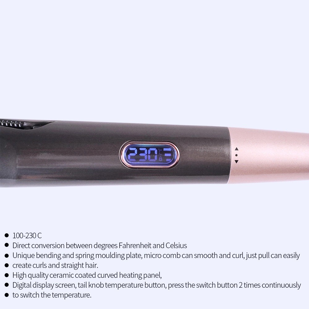 ❀❀All Are In Stock.Please don't hesitate to buy now! ❀❀Shipping time normally takes 7-12 days. ❀❀Follow the store,Get Discount Coupon. ❀❀If you have any questions, please contact us. We guarantee that you can get a satisfactory solution. Please do not give us a low-star rating. ❤#citongyingke.vn☜ ☜ Click here to have more nice same items❤. Features: Compact size, easy to carry when you are on trip or journey. 2 in 1 Curling Iron & Hair Straightener, You can use it to make both straight and curly hair. Dual voltage and 360° swivel salon grade cord, 2.5m power line. Auto shut-off in 60 minutes, will make you have hair styling more easily. Negative ions eliminate frizz and close the cuticle to create smooth, shiny hair, resulting in faster styling with less damage. Specifications: Material of thermal plate: aluminum Color: As picture Voltage:100-240v 50/60Hz Power Source: Electric Power Cord Tail Assembly Mode: 360°Rotatable Temperature: 130°C-230°C Power: 45W Heating: PTC Package Included: 1*Hair Straightener