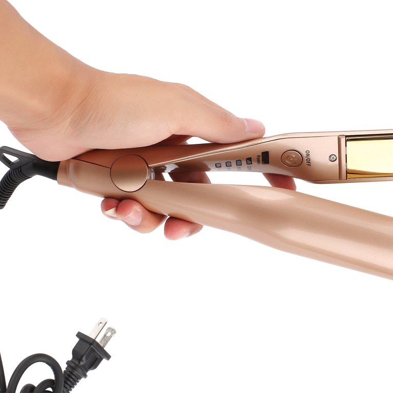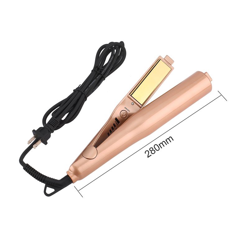 2 in 1 Twist Hair Curling & Straightening Iron Hair Curler Iron Hair Styler Features: Compact size, easy to carry when you are on trip or journey. 2 in 1 Curling Iron & Hair Straightener, You can use it to make both straight and curly hair. Dual voltage and 360° swivel salon grade cord, 2.5m power line. Auto shut-off in 60 minutes, will make you have hair styling more easily. Negative ions eliminate frizz and close the cuticle to create smooth, shiny hair, resulting in faster styling with less damage. Description: PTC Fast Heating Technology: PTC heating model and aluminum plate create a shinier, silkier finish in lesser time and eliminates frizz for longer time with less damage Compact appearance, light weight, come with anti-hot bag, dual voltage. Suitable for all kinds of hair quality. Recommended Temperatures for Hair Types: 140°C for damaged hair; 180°C for thick or naturally curly hair; 200°C for thick and hair hair; 220°C for super thick and hair hair. Specifications: Model: HS-058 Material of thermal plate: aluminum Color: golden Item size: 280*40*36mm Power Cord: approx 2.5m Heating area: 90*25mm Voltage:100-240v 50/60Hz Power Source: Electric Power Cord Tail Assembly Mode: 360°Rotatable Temperature: 140°C-220°C Power: 45W Plug type: UK, US, EU, AU Heating: PTC Packing type: with Anti-hot bag, without bag Package included: 1 x Twist Straightening Iron 1 x User Manual
