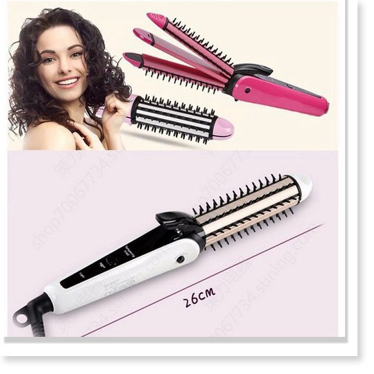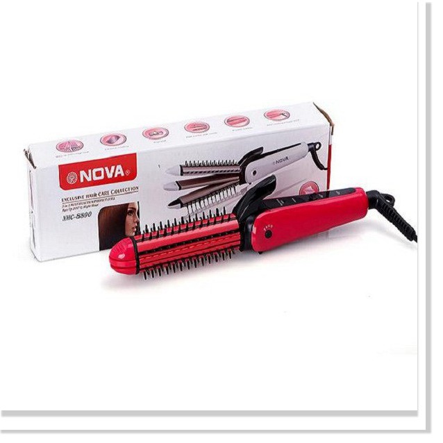 Máy Uốn Duỗi Bấm Tóc --------------------------------------- -Máy làm tóc 3 trong 1 Nova 8890, vừa làm xoăn, vừa là tóc, vừa dập xù tiện lợi. Với chiếc máy này, bạn hoàn toàn không còn phải dùng đến những máy làm tóc cồng kềnh và kém tiện dụng mà lại không thể cùng lúc tạo được nhiều kiểu tóc đẹp. Với thiết kế hiện đại, sáng tạo, bạn có thể tự mình tạo ra nhiều kiểu tóc ưng ý như: làm xoăn, làm phồng, uốn cụp, là thẳng, là cụp, dập xù...chỉ với vài phút cùng với những thao tác vô cùng đơn giản. Máy tạo kiểu tóc đa năng 3 trong 1 Nova vừa làm xoăn (làm phồng), vừa là (là thẳng, là cụp), vừa dập xù. Lược điện uốn xoăn hoặc cụp đuôi rất tiện lợi. --------------------------------------- Loại sản phẩm: Lược duỗi - bấm - uốn xù. - Nhiệt độ : 180 - 200 độ C - Nguồn điện: AC 110V-220V, 35W. - Chiều dài 25 cm. - Lọn uốn: 26 mm - Đế xoay 360 độ. - Màu sắc: hồng --------------------------------------- Hướng dẫn sử dụng: - Cắm dây điện bật công tắc để tầm 1 phút cho máy nóng đều. - Sử dụng kháo chốt để điều chỉnh kiểu làm phù hợp. - Bấm tóc và giữ nhẹ đầu máy trong vài giây rồi thả ra. - Sử dụng xong điều chỉnh nhiệt về mức Power rồi rút dây điện để khoảng vài phút cho máy nguội rồi mới cất máy.