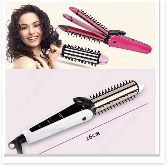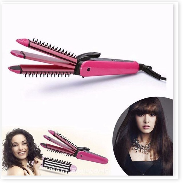 -Máy làm tóc 3 trong 1 Nova 8890, vừa làm xoăn, vừa là tóc, vừa dập xù tiện lợi. Với chiếc máy này, bạn hoàn toàn không còn phải dùng đến những máy làm tóc cồng kềnh và kém tiện dụng mà lại không thể cùng lúc tạo được nhiều kiểu tóc đẹp. Với thiết kế hiện đại, sáng tạo, bạn có thể tự mình tạo ra nhiều kiểu tóc ưng ý như: làm xoăn, làm phồng, uốn cụp, là thẳng, là cụp, dập xù...chỉ với vài phút cùng với những thao tác vô cùng đơn giản. Máy tạo kiểu tóc đa năng 3 trong 1 Nova vừa làm xoăn (làm phồng), vừa là (là thẳng, là cụp), vừa dập xù. Lược điện uốn xoăn hoặc cụp đuôi rất tiện lợi. Loại sản phẩm: Lược duỗi - bấm - uốn xù. - Nhiệt độ : 180 - 200 độ C - Nguồn điện: AC 110V-220V, 35W. - Chiều dài 25 cm. - Lọn uốn: 26 mm - Đế xoay 360 độ. - Màu sắc: hồng Hướng dẫn sử dụng: - Cắm dây điện bật công tắc để tầm 1 phút cho máy nóng đều. - Sử dụng kháo chốt để điều chỉnh kiểu làm phù hợp. - Bấm tóc và giữ nhẹ đầu máy trong vài giây rồi thả ra. - Sử dụng xong điều chỉnh nhiệt về mức Power rồi rút dây điện để khoảng vài phút cho máy nguội rồi mới cất máy.
