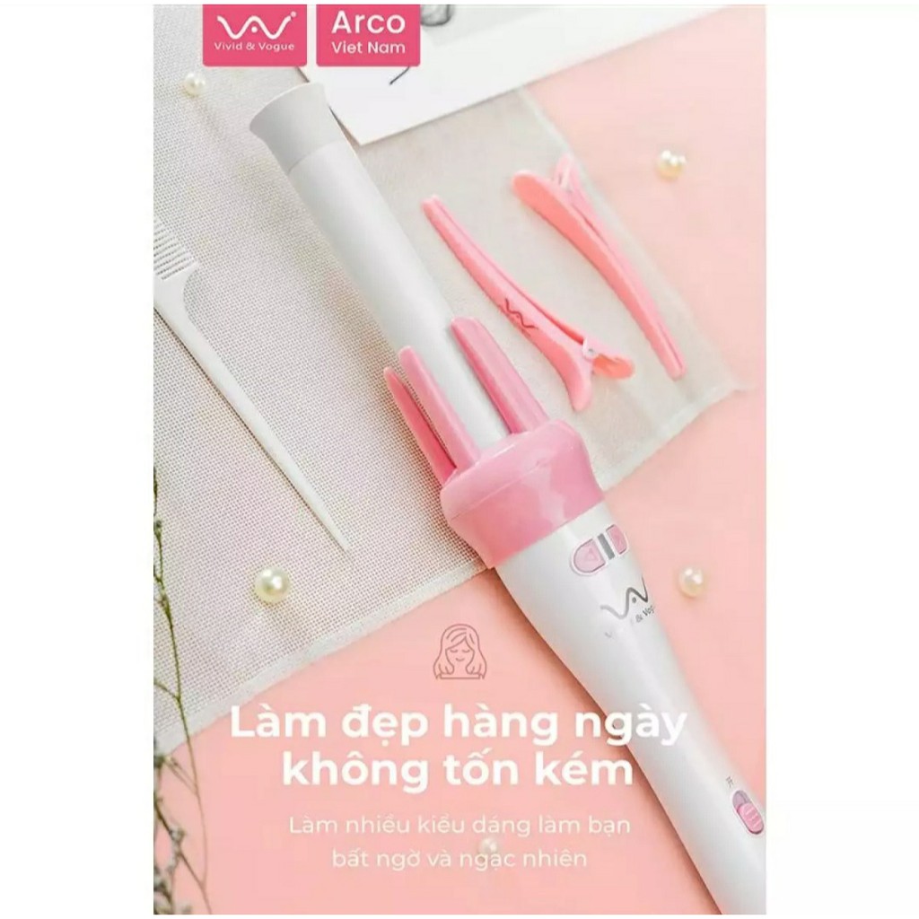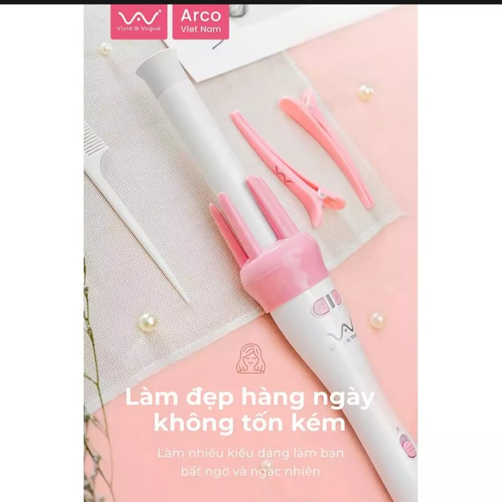 dịch bệnh hiện nay phiên bản phân phối tại thị trường Việt Nam tạm thời hết hàng , sản phẩm thay bằng phiên bản phân phối tại thị trường Trung quốc 2 Phiên bản giống nhau hoàn toàn chỉ khác ngoài hình đóng gói và thị trường phân phối mà thôi, Bản nội địa trung quốc thường hay có hàng copy nên dễ gây nhầm lẫn cho các bạn, trong trường hợp không yên tâm bạn được đổi trả sản phẩm. Sản phẩm được nhập từ nhà phân phối do đó hoàn toàn yên tâm về nguồn gốc sản phẩm MÔ TẢ SẢN PHẨM VIVID&VOGUE VIỆT NAM Giới thiệu quý khách hàng sản phẩm Máy Uốn Tóc Tự động VAV-022B. 🎀 MÁY UỐN TÓC XOĂN XOAY TỰ ĐỘNG VIVID&VOGUE®️ với tông hồng phấn mix trắng quá yêu kiều, hãng thiết kế chu đáo từ bao bì, phụ kiện tặng kèm, đến đường nét thiết kế dáng máy nét nuột vô cùng!😘😘 🎀 Thiết kế của MÁY UỐN TÓC XOĂN XOAY TỰ ĐỘNG gồm 4 thanh đỡ tóc để sau khi gài nhẹ tóc vào trục uốn, máy sẽ tự động xoay chiều xoăn trái hoặc phải mình muốn.☺️ 🎀 Thanh trục uốn của MÁY UỐN TÓC XOĂN XOAY TỰ ĐỘNG VIVID&VOGUE®️ được ưu ái thiết kế dài hơn so với các dòng máy uốn tóc xoăn khác nên rất thuận tiện uốn cho các bạn có mái tóc dài 💃🏻 🎀 Tốc độ chiều xoay trái phải được cải thiện xoay nhanh hơn, ⏰ thời gian tạo kiểu lại càng rút ngắn nhanh và thuận lợi hơn 👍🏻 Trục uốn size 28mm, sóng bồng bềnh chuẩn tóc ngắn dài đều phù hợp ☺️ Sản phẩm chính hãng MÁY UỐN TÓC XOĂN XOAY TỰ ĐỘNG VIVID&VOGUE®️ được tặng kèm phụ kiện: 02 kẹp phân tóc hồng phấn, 01 lược chải phân tóc màu trắng cực xinh。 ---------------------------------------------------------------------------------------------------- THÔNG SỐ KỸ THUẬT MÁY UỐN TÓC TỰ ĐỘNG * Model : VAV-022B * Mầu Sắc: Hồng - Trắng * Điện áp sử dụng : 220V * Tần Số: 50Hz * Công Suất: 45W * Kích Thước Máy: 34cm*3cm * Trục Uốn Tóc: 28mm * Tốc Độ Uốn: 200 vòng/1 phút * Nhiệt Độ: Chíp Cảm Biến Nhiệt Độ * Tốc độ làm nóng: 200 độ C tròng vòng 30 giây
