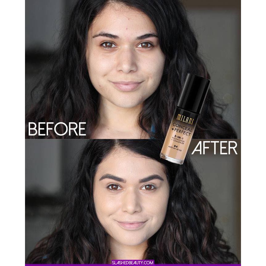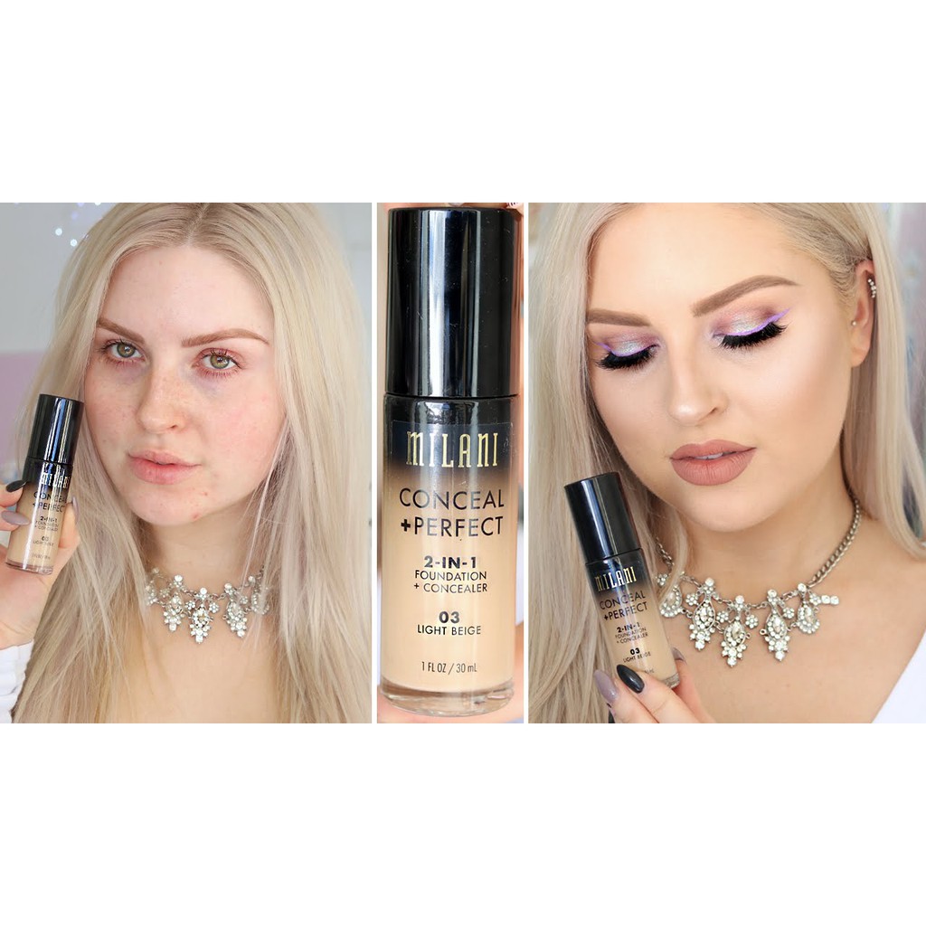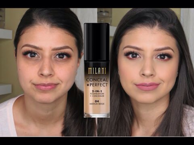 kem nền MILANI conceal + perfect 2in1 Trang điểm không chỉ giúp che đi khuyết điểm mà còn làm tôn lên vẻ đẹp của người phụ nữ. Khi trang điểm, lớp nền đẹp sẽ giúp gương mặt trẻ trung và rạng rỡ hơn. Foundation là kem nền cổ điển nhất, thường có độ bám và che phủ cao, hiệu chỉnh màu da tốt, có nhiều ở dạng lỏng, đặc, hoặc dạng kem hay dạng bánh để lựa chọn tùy theo tính chất da. Sản phẩm được sản xuất theo công thức đặc biệt cho lớp kem nền trang điểm siêu mỏng, mịn mà vẫn giúp che phủ khuyết điểm trên da, cho làn da hoàn hảo, sáng mịn màng không tì vết. Sản phẩm còn hỗ trợ chống nắng ngừa da sạm nám, hư tổn do ánh nắng mặt trời và các yếu tố khác từ môi trường. Sản phẩm không chứa hóa chất, không chất bảo quản, do đó cực kỳ an toàn cho da, giúp da phục hồi nhanh chóng, sáng khỏe tự nhiên. Sản phẩm mới ra mắt của Milani đã nhận được rất nhiều feedback tốt từ người dùng. Kem che khuyết điểm cực tốt vết cuồng thâm dưới mắt, mụn đỏ và tàn nhang. Kem nền siêu mịn và mỏng, cho bạn làn da tự nhiên hoàn hảo. ????Cách sử dụng: Chấm một chấm ở dưới cuồng mắt, mụn đỏ và những vùng cần che khuyết điểm khác. Tán đều kem trên mặt Sử dụng một lượng nhỏ vừa đủ để làm kem nền, thoa đều theo chiều kim đồng hồ để có được làn da đẹp tự nhiên hoàn hảo. Do foundation có độ bám phủ cao nên phải tẩy trang kỹ sau khi dùng. Nên có một lớp kem dưỡng ẩm và kem lót hay kem chống nắng để bảo vệ da trước khi dùng kem nền.