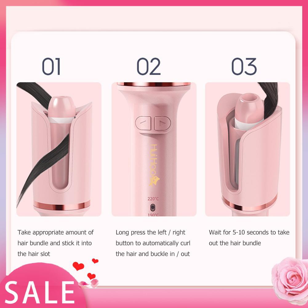 Automatic Spiral Hair Curler Ceramic Rotate Curling Iron Long-lasting Hair Styling Hair Care Electric Hair Styler Waver Feature: Automatic more intelligent, intelligent constant temperature. Anti scald design, protect your hair. Integrated anti scald design, 5-10 seconds shaping, 5 minutes to complete modeling. Specification: Product color: Pink, Dark Green, White Material of heat conducting body: tourmaline ceramics Product size: 350 * 105 * 60mm/13.77*4.13*2.36'' Note: Due to the different monitor and light effect, the actual color of the item might be slightly different from the color showed on the pictures. Thank you! Please allow 1-2cm measuring deviation due to manual measurement. Included: 1 X Automatic Spiral Hair Curler
