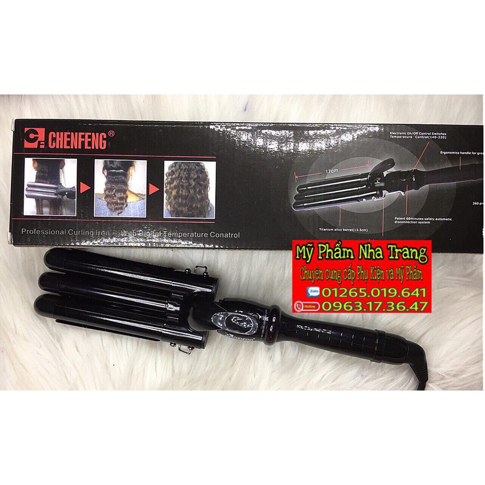 Điện áp: 220V Nhiệt độ: 140 - 220 độ C Đặc điểm nổi bật -Máy uốn tóc CF - 869 tạo được nhiều kiểu uốn mà bạn mong muốn như uốn xoăn, uốn lọn to , nhỏ, uốn gợn sóng. -Máy được nhà thiết kế tỷ mỉ, chống dính tóc, bền đẹp, cách điện, cách nhiệt an toàn để khách hàng có thể yên tâm . -Máy làm xoăn tóc CF - 869 có các nút điều chỉnh nhiệt độ tùy theo ý muốn để mái tóc bạn không bị hư tổn