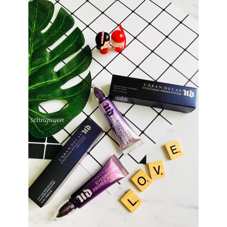 🌈Urban Decay Eyeshadow Primer Potion (Hàng xách Usa, fullsize 10ml) Nhiều chị em sẵn sàng chi rất nhiều tiền để mua phấn nền, phấn lót, phấn phủ, son… nhưng lại đắn đo cho kem lót mắt. Nguyên nhân chủ yếu là do chưa thực sự hiểu công dụng của kem lót mắt. Cũng như gương mặt, vùng da mắt cũng cần kem lót để lớp phấn mắt và phần kẻ mắt có thể giữ lâu cả ngày. Công dụng của kem lót mắt là giúp phần trang điểm ăn màu, đôi mắt sẽ có chiều sân và cuốn hút hơn. Kem lót giúp che đi khuyết điểm như các nếp gấp nhỏ của mí mắt vì vùng da này thường xuyên cử động. Ngoài ra, vùng da mắt rất nhạy cảm và chịu ảnh hưởng nặng nề của lão hoá. Kem lót đóng vai trò như một lớp màn bảo vệ, giúp vùng da mắt không bị ảnh hưởng của các chất hoá học. Đồng thời, sản phẩm sẽ cung cấp độ ẩm và chống nắng. (Trich từ elle.vn) 😊 Ở đây mình giới thiệu về kem lót mắt của Urban Decay được xem là đỉnh cao trong các sản phẩm kem lót mắt. Nói đến kem lót mắt là nhớ đến Urban, điều đó đủ thấy sự xuất sắc em ấy như thế nào. Đây là dòng sản phẩm mà gần như các beauty blogger trên toàn thế giới đều sở hữu, công dụng thì quá hoàn hảo, lớp makeup màu mắt bám tuyệt đối luôn, thậm chí ra cả mồ hôi cũng nguyên xi xi à. 👉Hiện shop có 2 dòng: 🍀Original - Dòng huyền thoại của hãng, cho một lớp lót mắt hoàn hảo phấn mắt bám cả ngày, giúp lớp makeup mắt không bị tạo rảnh, màu mắt trở nên đẹp hơn, mượt hơn. Nhờ vào công nghệ polyme không gian tuổi thọ lấp đầy bất kỳ khiếm khuyết nào trên bề mặt da, giúp bạn có thể giữ lớp makeup mắt cả ngày dài. 🍀Anti-Aging - Kem lót mắt thêm chức năng chống lão hóa. Công dụng vừa giúp lớp makeup mắt bám cả ngày dài, màu mắt lên matte và sống động hơn, mượt hơn thì em ấy còn cho lợi ích chống lão hóa da vùng mắt, cải thiện tình trạng lão hóa theo thời gian, đầy lùi nếp nhăn, cải thiện tình trạng quầng thâm, crepiness và các khiếm khuyết khác cho da vùng mắt. Theo như nhiều review thì nếu bạn chẳng may thử kem lót mắt này một lần rồi thì bạn không thể nào sống mà thiếu em ấy hihi. 🌵Một nghiên cứu lâm sàng trong 8 tuần: 100% người tham gia có một sự cải thiện có thể đo lường trong việc giảm hiệu quả các nếp nhăn vùng mắt. 100% người dùng cho biết da vùng mắt hết thâm, sáng hơn. 97% có một sự cải thiện làn vùng mắt phục hồi sinh lực. 🌸