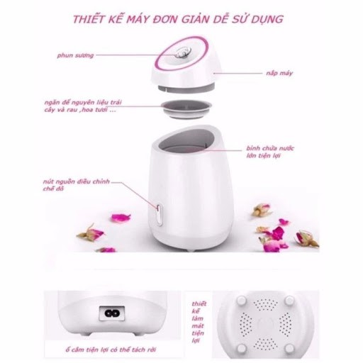 MÁY XÔNG DA MẶT HOA QUẢ TƯƠI TỰ ĐỘNG 2 IN 1 Còn gì thích bằng khi sử dụng nguyên liệu thiên nhiên từ hoa quả ,rau ...không hóa chất độc hại giúp bạn có 1 làn da hoàn hảo - Xuất xứ : Trung Quốc Cách sử dụng B1: Rửa sạch mặt B2: Đổ một lượng nước vào khoang chứa của máy. Chú ý là không quá vạch Max B3: Cắm điện và bật phím . Chờ khoảng 2 phút cho nước đun sôi Thời gian xông : khoảng 10 phút Sau khi xông hơi da mặt xong rồi , các bạn có thể tái sử dụng nguyên liệu đó làm mặt nạ đắp lên da mặt , sử dụng 1 nhưng công dụng lại đc 2 cực thích . Da mặt của bạn luôn phải chịu sự ô nhiễm bụi bẩn vì hàng ngày bạn phải tiếp xúc với khói bụi xe khi đi đi ngoài đường. Makeup quá nhiều rửa mặt tẩy trang ko sạch làm hóa chất vẫn bám vào lỗ chân lông Sự tích tụ các chất bụi bẩn, hóa chất lâu ngày ở lỗ chân lông sâu dưới bề mặt da sẽ làm da bạn lão hóa nhanh hơn. Một sản phẩm giúp ích cho việc chăm sóc da hiệu quả đó chính là chiếc máy xông hơi da mặt MAOE Công dụng đa năng của máy: Sức nóng từ máy xông mặt MAOER làm sạch mạch và trừ khử độc tố lâu ngày hình thành trong lỗ chân lông, chống làm quá trình viêm nang lông tạo mụn đầu đen và mụn bọc, loại bỏ mỡ thừa tích tụ lâu ngày dưới da và giúp quá trình trao đổi chất dưới da được lưu chuyển tốt hơn, da mau hồi phục hơn. Làm sạch sâu , lấy hết các bả nhờn tích tụ lâu ngày bên trong lỗ chân lông. Máy xông hơi da mặt MAOER còn có tác động lên vùng mũi họng do đó làm thông thoáng và bài tiết các độc tố đường thở, giúp thúc đẩy quá trình tuần hoàn máu, làm sạch da hiệu quả, cung cấp nước cho da, giúp da hấp thụ hiệu quả các dưỡng chất và các loại kem serum dưỡng da. Công suất của máy MÁY XÔNG DA MẶT HOA QUẢ TƯƠI TỰ ĐỘNG 2 IN 1 có thể phun hơi mạnh và rất xa ( khoảng 0,5 mét) và cần xoay ống phun theo mọi hướng. Bạn có thể nằm hay ngồi tùy thích để xông hơi, nhất là khi bạn mệt mỏi sau khi đi làm về hoặc đi chơi thể thao… bạn có thể nằm thư giãn rồi dùng máy mà không phải ngồi như các loại máy xông mặt phải ngồi mới có thể thực hiện được