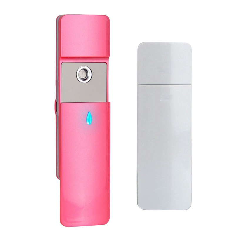 facial beauty hydrating massager usb mini facial humidifier Care Health Spa Mist Beauty Skin Care Steamer Color: white, pink Water tank: 8ml Electricity: 500mAh Fog time: 31-60 seconds Model: charging atomizer Gear position: 1 file Spray heat: cold spray