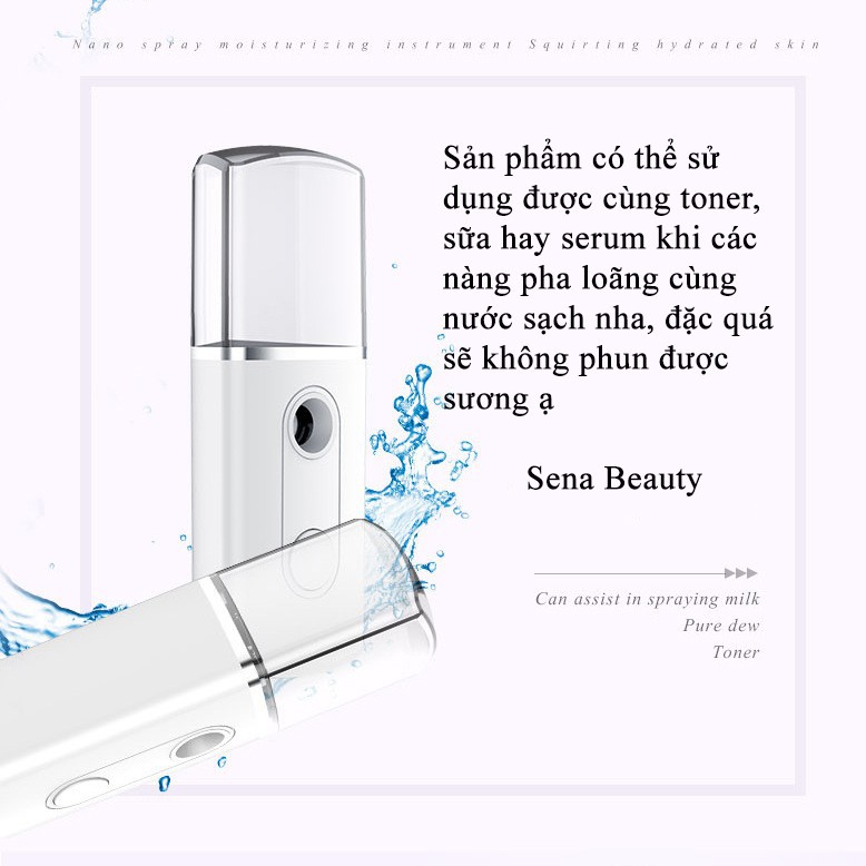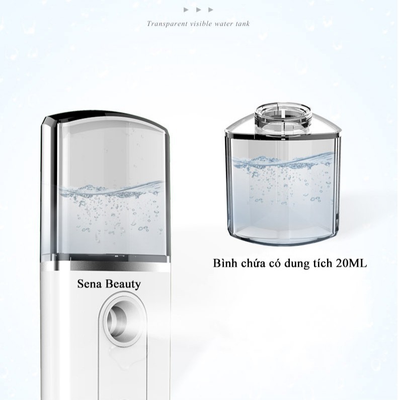 Máy xông mặt cầm tay mini nano moisture spray Giúp Loại bỏ bụi bẩn, làm sạch da mặt tạo cảm giác dễ chịu ngay tức thì khi sử dụng Thiết kế nhỏ gọn và sang trọng điểm đính đá cho bạn phong cách ấn tượng trước mọi người Cung cấp nước cho da giúp da mịn màng Nhỏ gọn và tiện dụng khi mang theo ra ngoài Xông mặt hiện đang là nhu cầu thiết yếu của mọi chị em vì da cần nước để giữ độ ẩm giúp mịn và tạo cảm giác dễ chịu. Máy phun sương cầm tay được thiết kế đặc biệt với chức năng tạo sương mù làm đẹp da mặt bằng công nghệ phun nanomet với những hạt siêu nhỏ, giúp bạn chăm sóc da mặt tối đa. - Những hạt sương nhanh chóng thấm sâu vào lớp tế bào của da, giữ ẩm cho làn da của bạn một cách hiệu quả, không tạo cảm giác ẩm ướt của nước như khi bạn xông hay rửa mặt thông thường. - Máy còn có tác dụng đưa mỹ phẩm thấm sâu vào tận trong cùng lớp tế bào của làn da, đẩy nhanh sự hấp thụ và gia tăng tính hiệu quả của các loại mỹ phẩm. - Kiểu dáng nhỏ gọn, thanh lịch, có thể sử dụng bất cứ lúc nào, sẵn sàng phục hồi độ ẩm và tạo sự căng mịn cho làn da đặc điểm kỹ thuật: 1. Tên Sản Phẩm: Phun 2. Trọng Lượng Sản Phẩm: 48 gam 3. Kích Thước Sản Phẩm: 10*3*3.2 cm/3.94*1.18*1.26 trong 4. Color: Trắng 5. Dung Tích Bình Nước: 15 ML 6. Material: ABS
