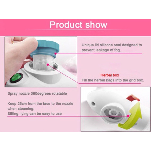 áy xông mặt massage ion âm! Sản phẩm gọn nhẹ, mẫu mã đep, dễ sử dụng, xông tinh dầu, nước hoa....làm đẹp da bằng phương pháp xông đơn giãn dễ làm mà không cần đến spa luôn ý! Bảo hành 1 năm cho khách nhé