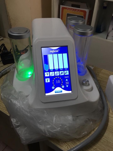 MÁY AQUA 6 chức năng, thiết kế sang trọng, giá ko đâu rẻ bằng. 👉Đầu làm sạch da: dùng lực đẩy của nước để lấy đi bã nhờn, bụi bẩn,lớp da chết xỉn màu,.... một cách nhẹ nhàng. Từ đó, ngăn ngừa mụn, diệt khuẩn, giúp da sáng đều màu và mịn màng. 👉Đầu điện di: Làm căng da, xóa mờ nếp nhăn, thúc đẩy tổng hợp collagen, giúp tế bào da hấp thụ chất dinh dưỡng, nước và oxy hiệu quả. Nhờ đó, làn da được trẻ hóa từ bên trong. 👉Đầu trị liệu tần số sóng điện từ RF: tác động sâu đến dưới da nhằm sửa chữa và tái tạo các sợi collagen đứt gãy, đồng thời tăng sinh sợi collagen mới, giúp da săn chắc và khỏe mạnh hơn. 👉Đầu sóng siêu âm: sử dụng sóng siêu âm giúp đưa dưỡng chất (serum, tế bào gốc, Vitamin C, kem dưỡng,....) thấm sâu vào các mô dưới da, thúc đẩy vi tuần hoàn và thay mới tế bào da. 👉Đầu búa lạnh: Tác dụng của nhiệt lạnh giúp lỗ chân lông se khít lại. Đồng thời làm dịu da sau các liệu trình nặn mụn, lăn kim, lazer,.... 👉Đầu phun oxy: tạo ra những phân tử nước tần số cao, nhanh chóng thẩm thấu sâu qua lớp biểu bì, cung cấp oxy nuôi dưỡng tế bào da. ————————————————- Giá siêu tốt c e ơi Hàng chuẩn bao hút khoẻ phun khoẻ ạ ^^