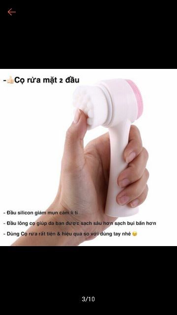 💦Cọ rửa mặt 2 đầu Maange💦💦 (Với đầu bông rửa mặt và đầu cọ massage ) - Là một công cụ làm sạch da cực kỳ hiệu quả. Chúng làm sạch sâu các lỗ chân lông, đồng thời massage da giúp tăng tuần hoàn máu. Rửa mặt bằng bàn chải, da sẽ sạch mịn và hồng hào hơn. - Loại bỏ mọi tác nhân gây mụn: Bã nhờn, bụi bẩn, tế bào da chết, loại bỏ mụn cám, mụn đầu đen - Làm sạch mỹ phẩm trang điểm, đặc biệt ở mắt và chân mày,thu nhỏ lỗ chân lông nhờ lấy sạch bụi bẩn nằm sâu dưới lỗ chân lông - Giúp các tinh chất thẩm thấu tốt hơn vào da sau khi lỗ chân lông đã sạch sẽ và thông thoáng.