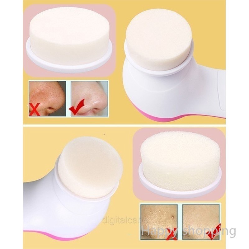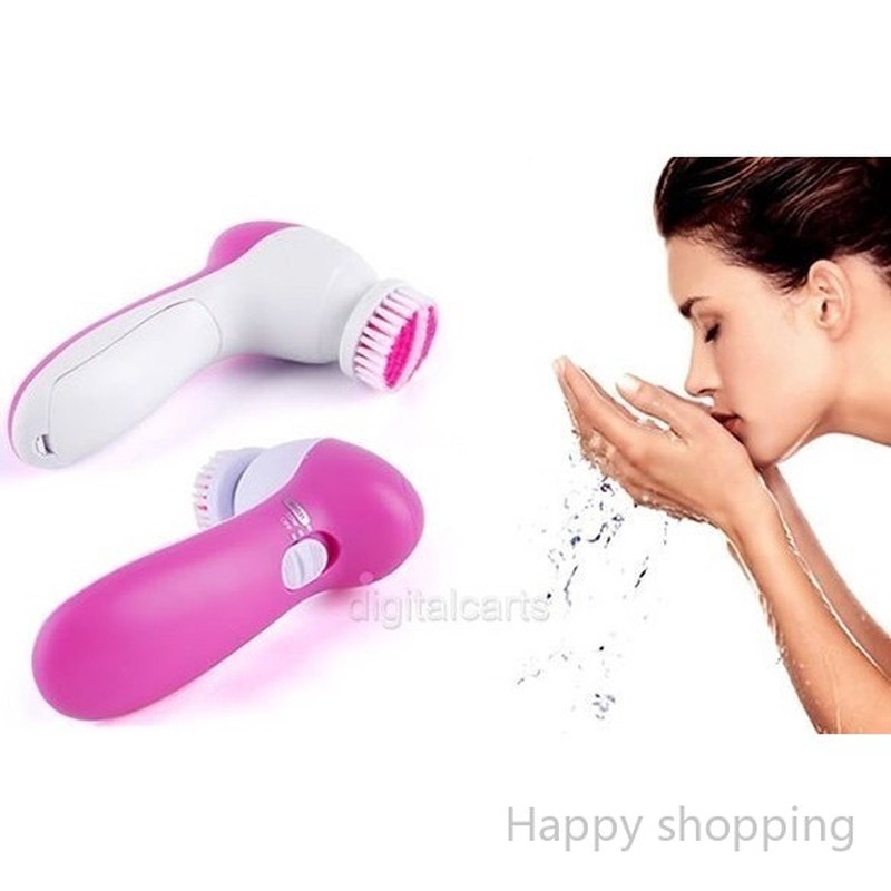 Vibrate Electric Facial Cleansing Brush Face Cleanser Skin Care Wash Machine Specifications: Brand New & High quality. Type: Facial Cleansing Brush Color: rose red Requires 2 AA batteries Size: 13.1cmx8.5cm; Body color: rose red Body material: ABS; Function: -Helps you achieve beautifully clear and radiant skin -Gently loosening and removing dirt, excess oils, exfoliating dead skin cells to reduce the size of your pores -ncreasing circulation, stimulating tissue regeneration and collagen production to reduce wrinkles Features: -Two speeds for choice, Gentle Feeling & Smooth Feeling -Battery operated, ready to be used whenever and wherever Package Included: 1 * 5 in 1 Facial Massager with 5 Different Rotating Heads(Batteries Not Included) Precautions: 1: allergic skin and easily swollen skin Do not use. 2: When using a clean brush on the skin do not press too tight, when used to feel comfortable is appropriate. Start using the time control within 2 minutes, followed by the use of gradually increase the time and frequency. 3: scrub head can not be used in the face Instructions for use: water wash face cream squeezed in his face a few rubbing with a hand then wash face cleansing instrument can be. Brush head: thoroughly clean the dirt attached to the face, in-depth clean the skin, clean the effect of oil control effect is better Sponge head: massage, cleaning at the same time, to absorb oil, cosmetics residues Latex Head: For deep cleaning around the eyes and cheeks, eliminate fatigue, remove dark circles Scrub head: Effectively remove the hands, feet, aging skin, make the skin more compact Ball massage head: increase massage intensity, face-lift effect is obvious on the face, hands, feet massage, promote blood circulation, allowing you to younger and younger, can promote blood circulation, anti-aging.