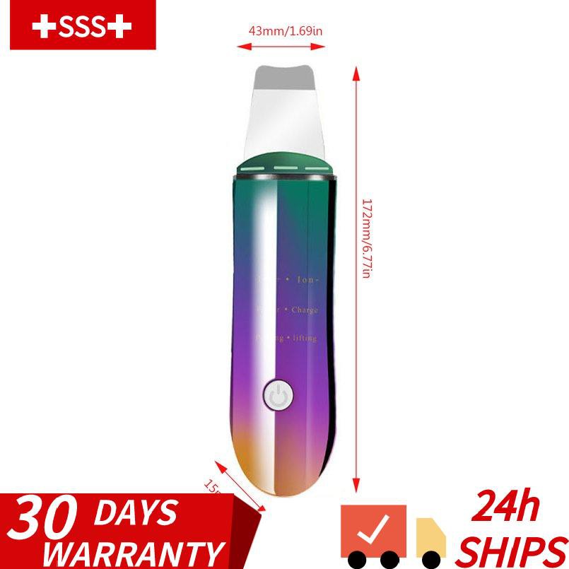 AvailableUltrasonic Cleansing Beauty Instrument Shovel Skin Machine Vibration Ion Features: -Simple and free, light and compact: the environmentally friendly material is integrated into the ergonomic streamline design and easier to hold. -Ultrasonic technology: Activate cells to rejuvenate the skin at a frequency of about 20,000 Hz. The vibration wave can penetrate deep into the skin, relying on the micro-foam spray energy generated by ultrasonic waves. -Positive and negative ion technology: positive ion derivation and negative ion introduction are ultrasonic superimposed ion currents. With the electronic properties of ions, the skin pigments are rapidly decomposed, and the melanin decomposed by blood circulation is used to extract the dirty matter inside the pores and absorb the skin nutrients. 4.304 probe: food grade material, more suitable for all skin types. -Dust cover design: prevent dirt from growing and use more assured. Descriptions: -To eradicate the bad substances such as grease stains and aged cuticles on the skin surface and pores. 2, To deep wrinkle removal, enhance skin elasticity, skin skin quality is improved and improved, the skin is bright and white, healthy. Specifications: Color: Dynamic color, Elegant white Size:172*43*15mm Power: 1.5W Battery Capacity : 500mAh Lithium battery: 3.7V Charging method: USB Package included: 1 x Ultrasonic Cleansing Instrument with Colorful Package Notes: -Due to the difference between different monitors,the picture may not reflect the actual color of the item. We guarantee the style is the same as shown in the pictures. -Due to the manual measurement and different measurement methods, please allow slight deviation.Thanks!