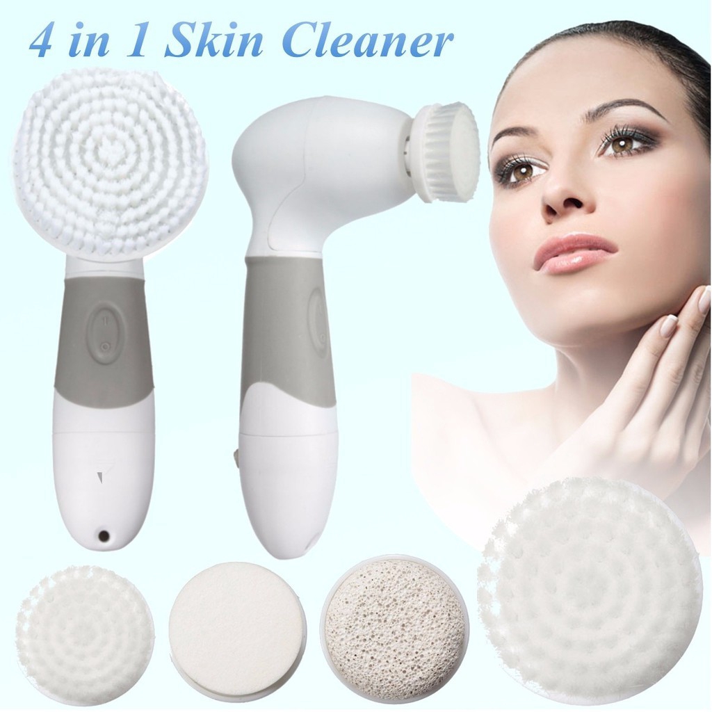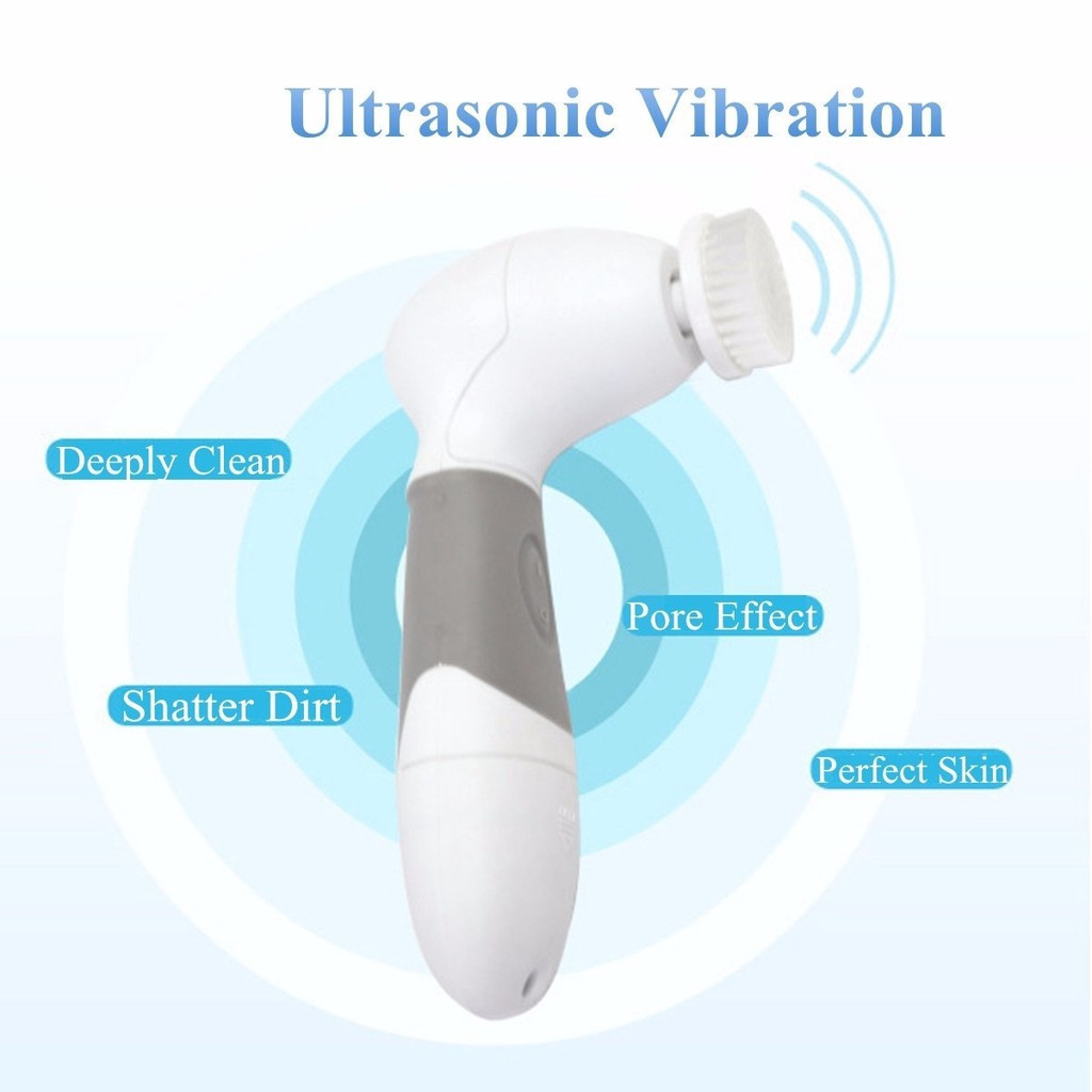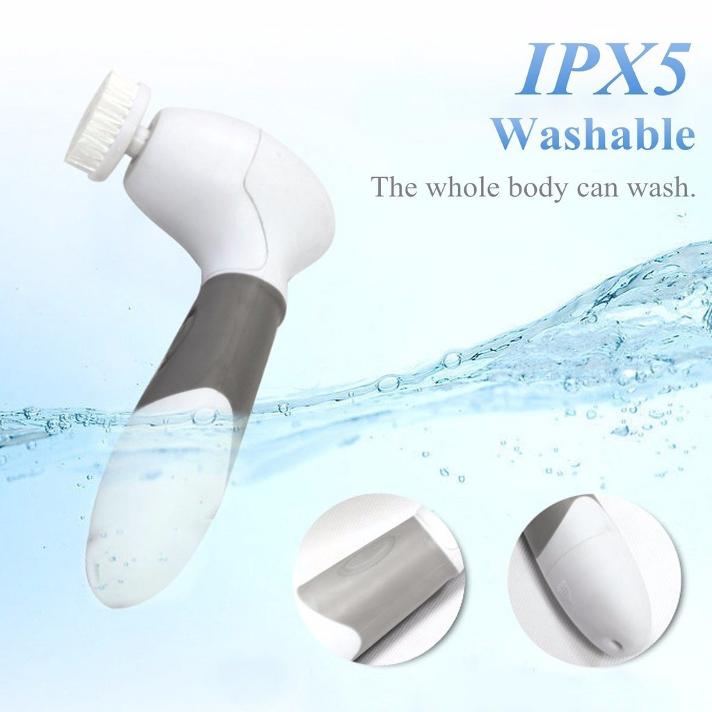 Features: 1.Clean body and face, & remove hard cells. 2.Rotating facial brush for deeply cleaning, effectively exfoliating of dead skin cells. 3.Reveal a radiant and youthful skin, stimulating blood circulation, eliminating fatigue and relieving pressure. 4.Enables you to reduce the appearance of fine line and wrinkles by deeply cleaning pores and extracting bacterial. 5.Suitable for the various parts of the body. 6.It is a waterproof item which is ideal for usage at bathroom. Specifications: -The Main Handle Unit: 1.Material:ABS 2.Power: 4pcs AA B atteries (Not Included.) 3.Waterproof: IPX5 4.Working Method: Rotary around 9000RPM 5.Speeds: One Speed 6.Color: White & Gray -Facial Brush: 1.Diameter:3.5cm 2.Apply to: Face 3.Function: Deeply clean face, and regular use it to get better result. -Facial Sponge: 1.Diameter:3.5cm 2.Applied to: Face 3.Function: Cosmetic soft sponge gently massage your skin to activate skin activity to make skin elastic and greatly helps nutrition absorption. -Big Body Brush: 1.Diameter:8cm 2.Applied to: Hand & Body 3.Function: Remove dead skin gently. -Pumice Stone: 1.Diameter: 3.5cm 2.Applied to: Foot & Elbow 3.Function: Efficient removes hard cells at elbow or foot while brushes spin them away. Package Included: 1x Main Handle Unit 1x Body Brush (Big Brush) 1x Facial Sponge 1x Facial Brush (Small Brush) 1x Pumice Stone 1x Manual