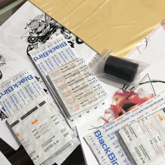 Sp gồm :10kim 3rl+ ngòi 10kim7rl+ ngòi 10 kim 5rl + ngòi 1 da tập 2mm 1 bọc cao su size 25 2 catalo Cung cấp dụng cụ xăm ..