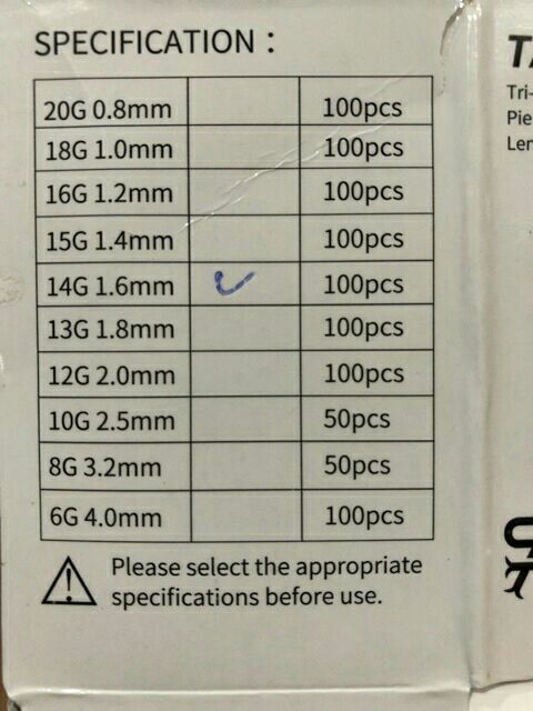 Kim xỏ khuyên các size từ 8g-10g-12g-13g-14g-15g-16g...xỏ các vị trí khác nhau..kim dùng một lần để bảo đảm an toàn cho khách hàng