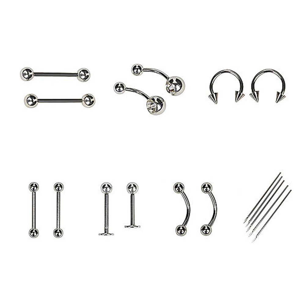 *Welcome to Sliprain Store.Happy shopping! *shopping tips: -Shop Products Are Ready Stock; -all products in this shop are wholesale prices; -full store activity,5-60% off ; -before ordering,,enjoy more benefits (enter the shop home page toreceive); -Any shopping problems,please contact our coustomer service. Specifications: Piercing kit includes everything you need for body piercing: belly rings, straight barbells, nose rings, gloves, needles and clamp. Type: Piercing Tool Kit Usage: Body Piercing Quantity: 20 Pcs/Set Material: Stainless Steel Suitable Area: Eyebrow, Nose, Lip, Tongue, Belly Button Notes: Please sterilize before use. Due to the light and screen setting difference, the item's color may be slightly different from the pictures. Package Includes: 1 x Piercing Tool Kit(20Pcs in Total)