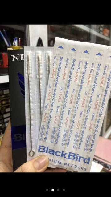 Kim xăm hãng black bird .. kim làm chất liệu thép không rỉ( chất lượng kim rất tốt) kim sắc bén không kém loại kim giá cao khác Vỉ gồm 5kim+ ngòi kèm theo
