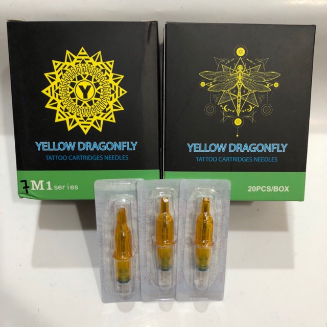 Kim xăm máy pen hãng Dragon ..biểu tượng chuồn chuồn màu vàng..là dòng kim rẻ nhưng kết cấu dây chun và chất lượng khá ổn định..đóng gói 20 chiếc/hộp